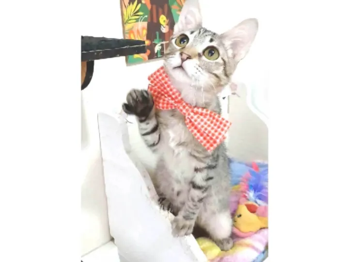 Hércules, um gatinho SRD, com linda pelagem cinza rajada, em forma de tigre e porte pequeno. Com apenas 4 meses de idade, ele já está vacinado e vermifugado, tem castração garantida e está pronto para encontrar um lar amoroso. Com seu temperamento dócil, brincalhão e sociável, Hércules se dá bem com outros -