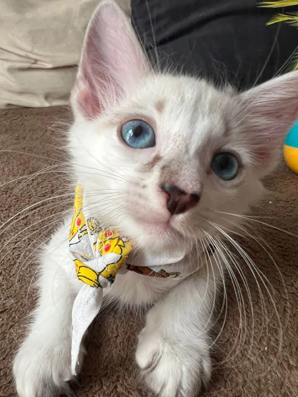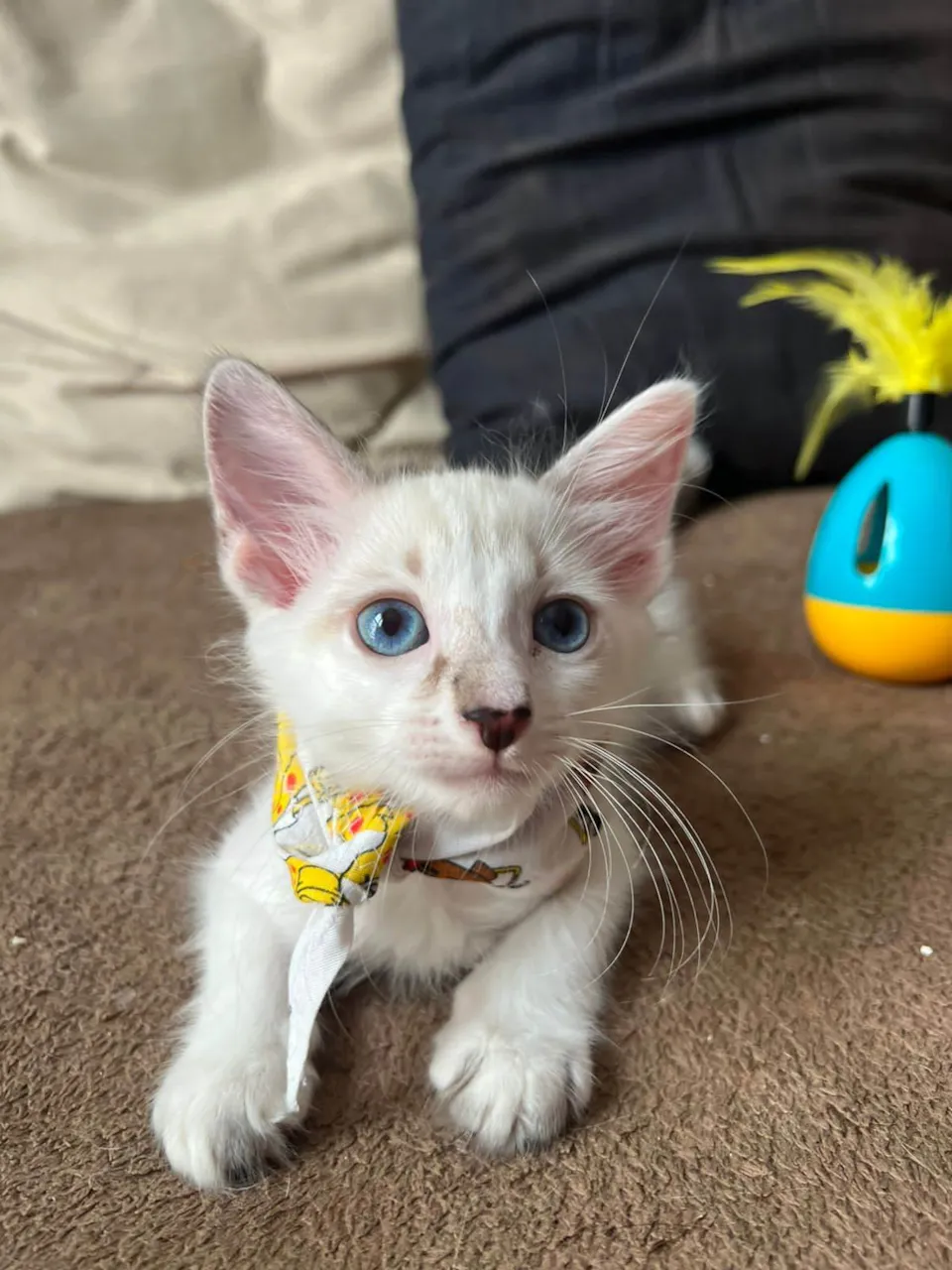 Ice é um gato branquinho de 60 dias e 1 kg. Vermifugado, vacinado e saudável. Procura uma casa com telas. Adora brincar e é carinhoso.