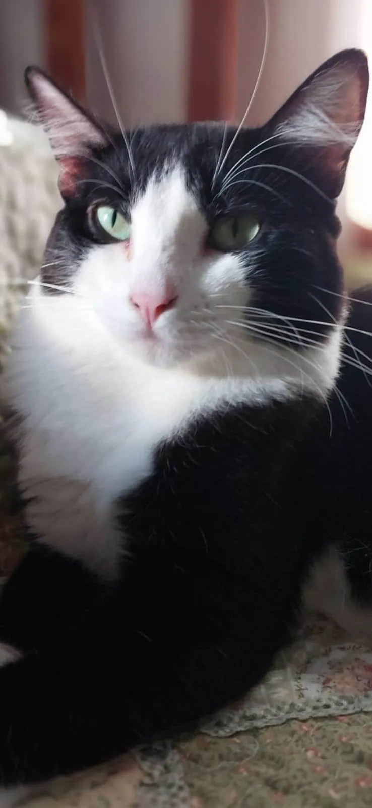 Muito tranquila, delicada, gosta de receber carinho, fica bem com gatos e com caes.