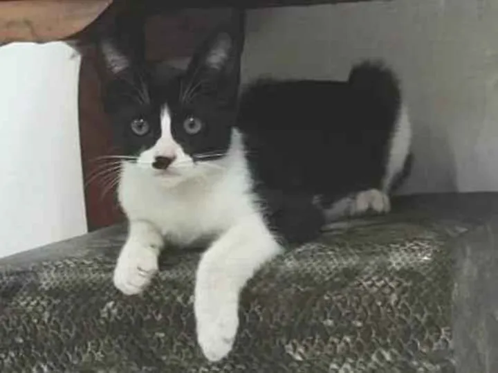 Conheça a Mia, uma gatinha fêmea da raça SRD-ViraLata com pelagem branca e preta, com idade entre 2 a 6 meses e porte pequeno, pronta para encontrar um novo lar. Mia foi resgatada das ruas e está em um lar temporário, mas precisa de uma família permanente para chamar de sua.