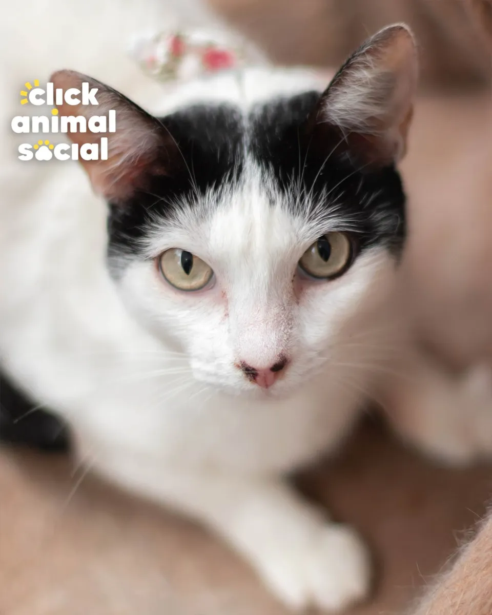 MImi é uma gatinha branca com partes pretas em seu corpo, de aproximadamente 3,5 anos, castrada, testada para Fiv/Felv (negativa) e vacinada com a V5. É dócil e carinhosa, porém, um pouquinho assustada.