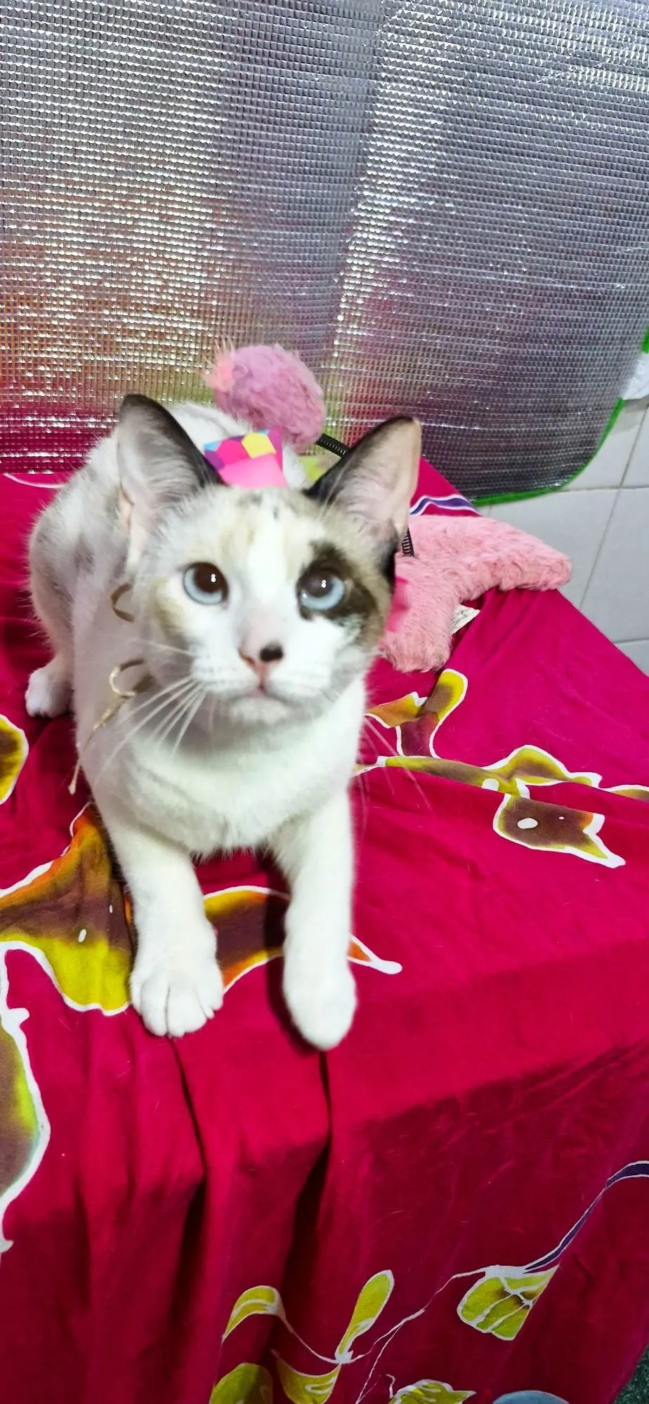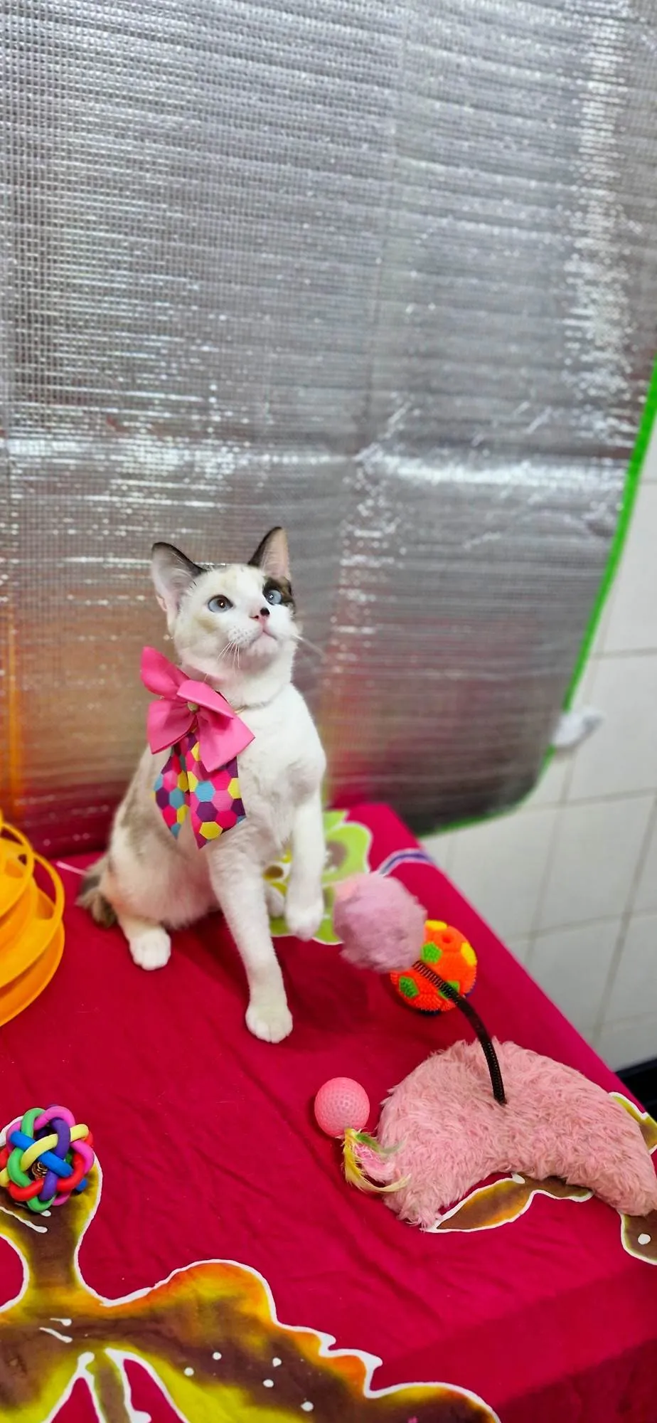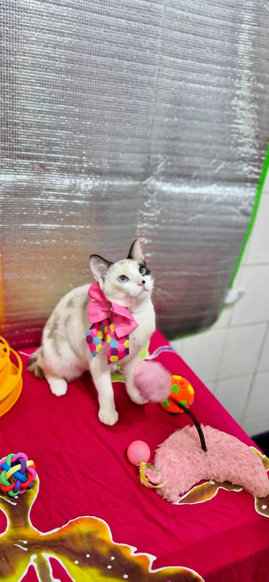 Tão novinha e já conheceu o lado ruim da vida. Quando foi encontrada, estava com parte do rabinho necrosado, sentia muita dor. Foi necessário fazer a amputação de uma parte do rabinho. A recuperação foi excelente e logo deu lugar a brincadeiras. Não dispensa bolinhas com penas.