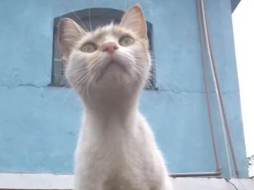 Gata branca e amarela, muito dócil, apareceu aqui em casa.