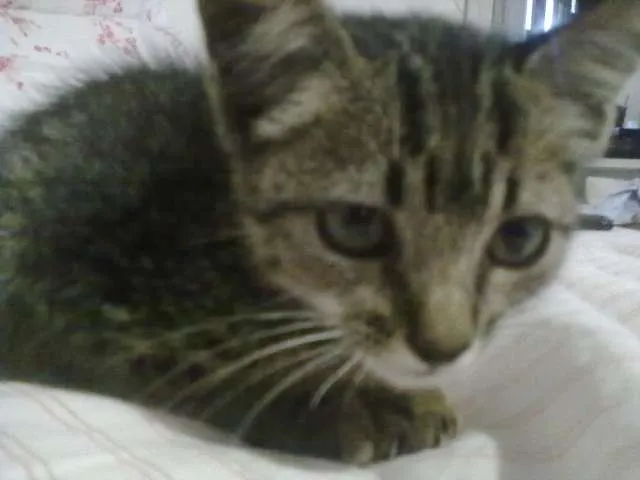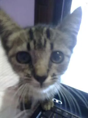 Achei essa gatinha na rua ontem, não pude deixar de trazê-la, ela certamente seria atropelada por causa do tamanho. Agora estou tentando conseguir um dono pra ela. Ela é bem pequena, deve ter um mês mais ou menos e já está comendo ração.