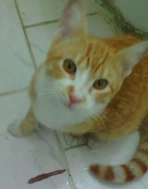 Macho inteiro, pelo amarelo e branco, olhos cor de mel, pesando 3kg e idade aproximada de 1 ano. Está saudável, sem pulgas, bem alimentado. Dócil e adora colo. Encontrado no dia 22/05/16, próximo ao viaduto de Nova Iguaçu e à Via Ligth.