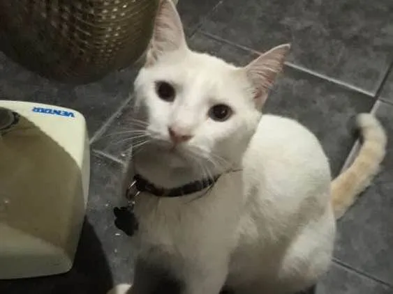 Miguel é um gato muito dócil, tem 3 anos e vive conosco desde os 2 meses de vida. É castrado, tem olhos azuis. Passa o dia inteiro dentro de casa e a noite vai na nossa rua e volta logo.