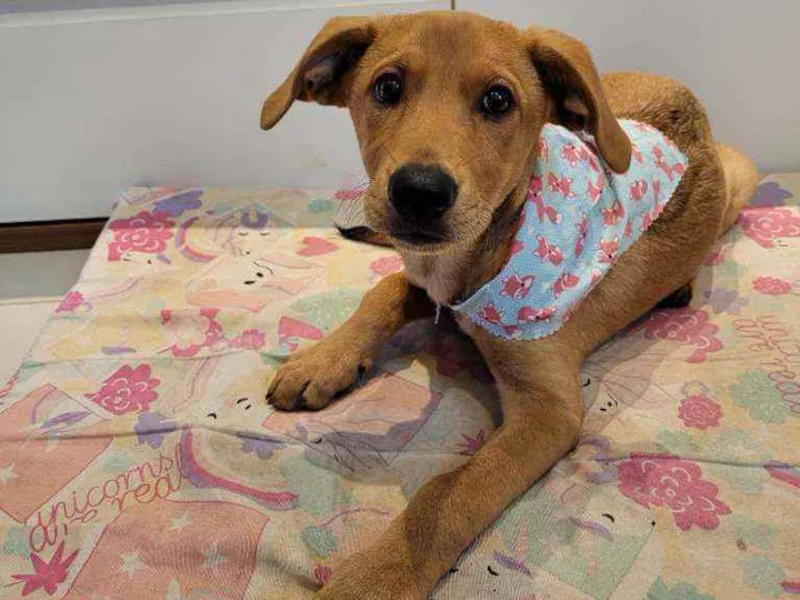 Filhote Caramelo disponível para adoção responsável! Tem cerca de 4 meses e 7 quilos. Vermifugado e já com a primeira vacina tomada. Deve ficar com porte médio.