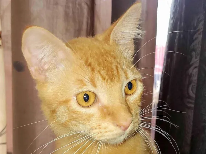 Pelagem amarela/alaranjada, entre 5 e 6 meses, um pouco gordinho e manchinhas na parte de dentro do nariz.Ele fugiu na noite de 25/06/2025, por volta de depois das 21. Provavelmente pulou de muro em muro, aconteceu algo e não conseguiu voltar. Como não tinha nem 1 ano e não o deixavamos sair de casa, pode ter se perdido fácil.
