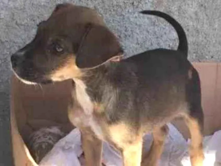 Filhote abandonado que me seguiu até em casa. Precisa urgente de um lar nesse frio. Não posso ficar pois já tenho um e infelizmente ele morde. Mas estou com ele até achar um lar.