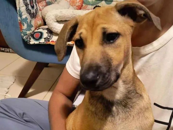 Encontrado na rua no dia 16/10/2024, com aproximadamente 2 meses, junto com seus 6 irmãos. Agora com cerca de 4 meses. Acreditamos que ficará de médio porte (+-15kg), pois não conhecemos os pais. Já vermifugado e com a 1a dose da vacina múltipla. Brincalhão, alegre, muito dengoso (adora colo), um pouquinho medroso. Em busca de uma família amorosa para adoção responsável