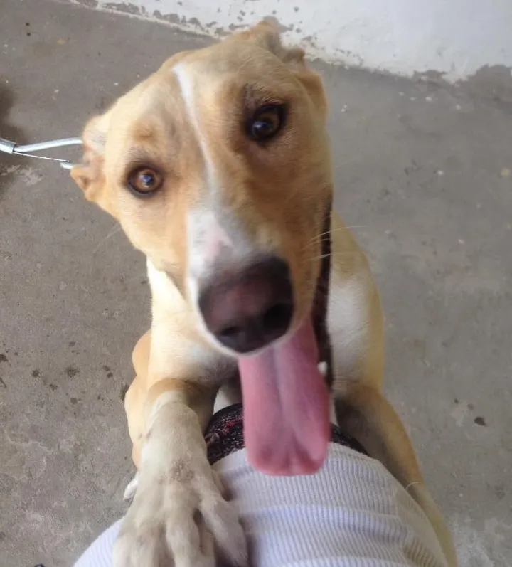 Pegamos o Zangado em fevereiro de 2016, ele era só amor, fazia muita bagunça mas a gente perdoava, morávamos só eu e minha mãe na casa. Mas em julho minha avó veio morar com a gente. E trouxe a cachorra dela, eles nunca se deram bem, sempre brigavam. Mas até então não era problema. Porém tivemos que mudar de casa, e mudamos para um "apartamento". E não tem mais espaço para ele, na antiga casa tinha espaço e neste já não tem. Não tem como infelizmente ficar com ele aqui. Ele é lindo, adora carinho. É bastante agitado e gosta de correr atrás de bola de futebol, é muito engraçado! Ele é muito animado, tentamos doar mas ninguém quer um cachorro já criado, a nossa última soluções são vocês!
