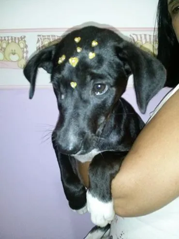 Esta cadelinha foi encontrada no bairro Vila Rica Tiradentes-Volta Redonda, certamente foi abandonada. Deve ter em torno de 3 meses, é vira lata, vai ficar porte médio. Está em minha casa temporariamente, é muito boazinha, brincalhona. Contato whatsapp 24 999441013.