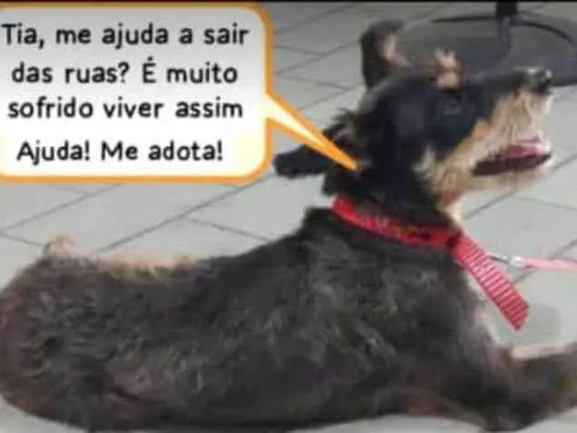 Encontrei esse animal junto a um homem em situação de rua. Aparentemente não está há muito tempo nas ruas pela maneira que se comporta. Parece se muito com a cachorrinha Estopinha.