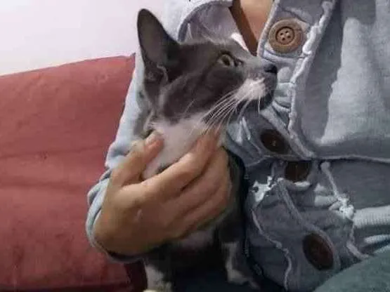Essa gatinha apareceu aqui em casa com fome e grávida então começou comer a ração dos gatos daqui de casa. ela já pariu, consegui doar os gatinhos, mas ela eu não tenho conseguido. Não posso ter mais gatos, pois já tenho três gatinhos resgatados e não tenho condições financeira para mais.
