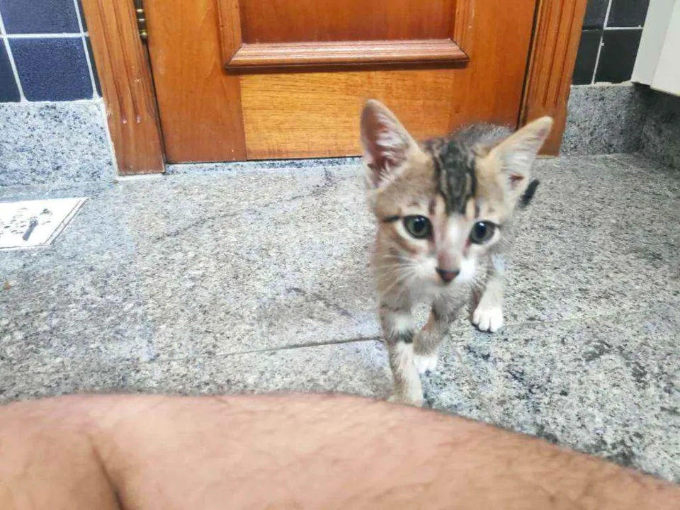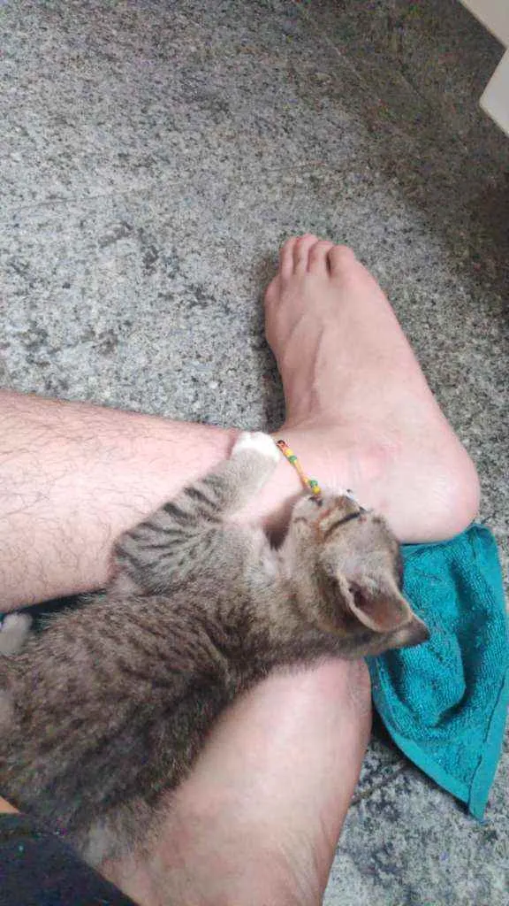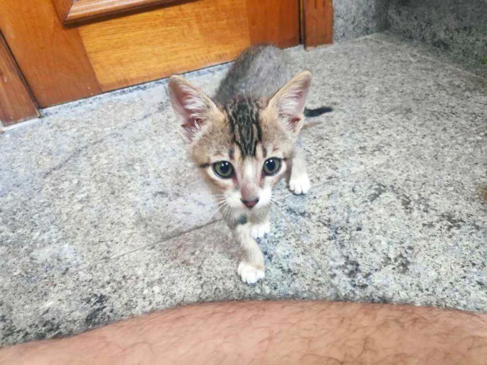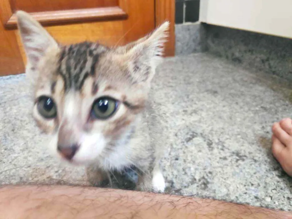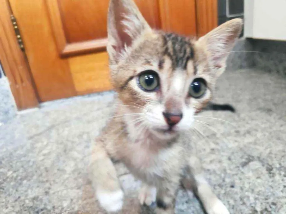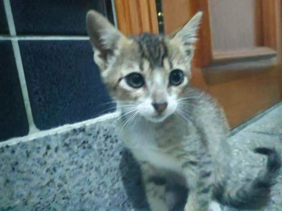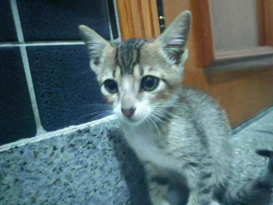 Tenho +/- 2 meses, e quero muito um lar. Eu e meus irmãos fomos abandonados, passamos fome, mas todos eles já conseguiram uma casinha, falta eu. Sou um menino muito alegre, amo correr e brincar com qualquer coisa que apareça na frente. Tô triste por estar em um banheiro pequeno, onde eu nem consigo correr. Eu sou felv, mas a veterinária que cuidou de mim disse que eu tô saudável e que posso ficar muuuito tempo sem sentir nadinha!