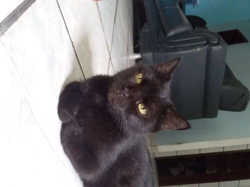 São dois filhotes pretos de olhos verdes sendo uma fêmea e outro macho, eles tem uma pouco mais de 45 dias de vida, já comem e usam a caixinha de areia. Eles adoram brincar e vivem correndo explorando a casa e brincando entre si
