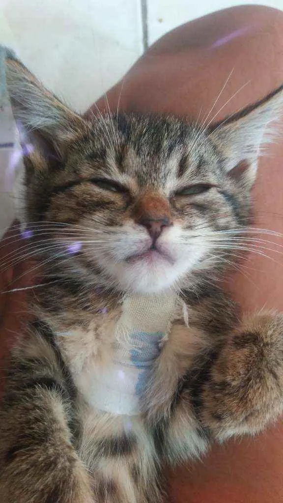 Esse é um dos gatinhos que encontrei abandonados, estavam muito tempo sem comer e tomar água. Eles são dóceis, ja comem racão e usam a caixinha de areia. Caso queira adotar algum desses xuxuzinhos entre em contato que eu vou deixar na sua casa.