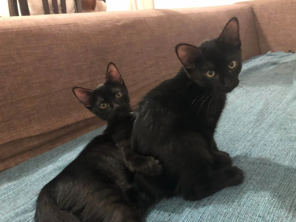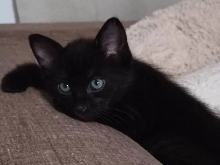 Gatinho preto, nascido em 9 de junho de 2024, com cerca de 2 meses e meio de vida, está procurando um novo lar! Apesar de suas patinhas tortas, ele se movimenta normalmente e é muito esperto, já sabe usar a caixinha de areia direitinho. Ele ainda não foi castrado nem vacinado. Se você procura um companheiro amoroso e cheio de personalidade, entre em contato para adotá-lo!