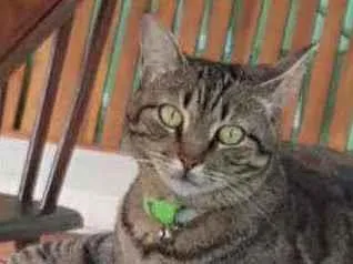 Mimi é uma gatinha cinza tigrada. Usava uma coleira clara, com detalhes em verde limão que brilhava quando refletia luz. Não é muito social, mas dependendo da pessoa aceita e dá carinho. Estamos arrasados. Foi vista pela última no condomínio onde moro, Bosque das Palmeiras, no dia 08/12/2021, em Nova Parnamirim.Tel para contato (48)998576889