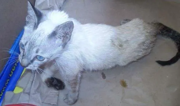 Foto: Pessoal este gatinho eu encontrei praticamente morto no dia 18 Dez 12 em Porto Velho, ele foi atacado por um cachorro, levei ao veterinário a já fiz todo o tratamento só que ele ficou com dificuldades de caminhar, mas está melhorando, gostaria de saber se alguém gostaria de ficar com ele, pois moro em apartamento e não tenho como continuar com ele. Telefone de contato: (69) 8425 9425 ou (69) 3213 0171 Flávio ou Cintia