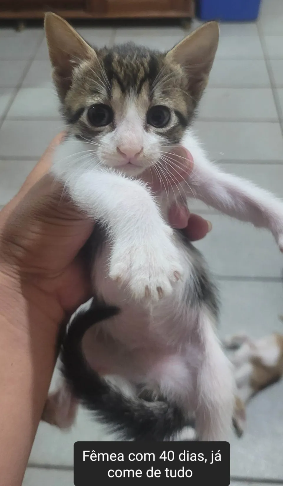 Resgatei a mãe deles filhotinha ainda e optei por cuidar, foi uma luta pro meu cachorro aceitar ela! Já estava com a castracao marcada mais quando levei não pode ser castrada pois estava grávida! Aí nasceu os filhotes, não posso ficar com eles porque trabalho um dia sim e outro não é tem o cachorro em casa! Atualmente vivem trancados infelizmente! A castraçao da mãe deles foi marcada pro dia 18/12 ! Preciso doar eles antes disso..