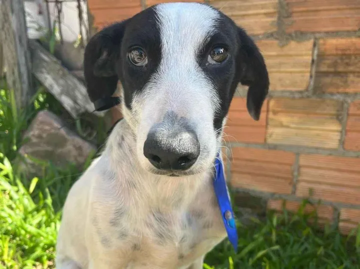 Este é o Flocos, um adorável cãozinho macho da raça SRD-Vira-Lata que está em busca de um lar amoroso e acolhedor. Com apenas 7 a 11 meses e um porte médio, Flocos se destaca por sua pelagem branca e preta que combina perfeitamente com seu coração gentil.