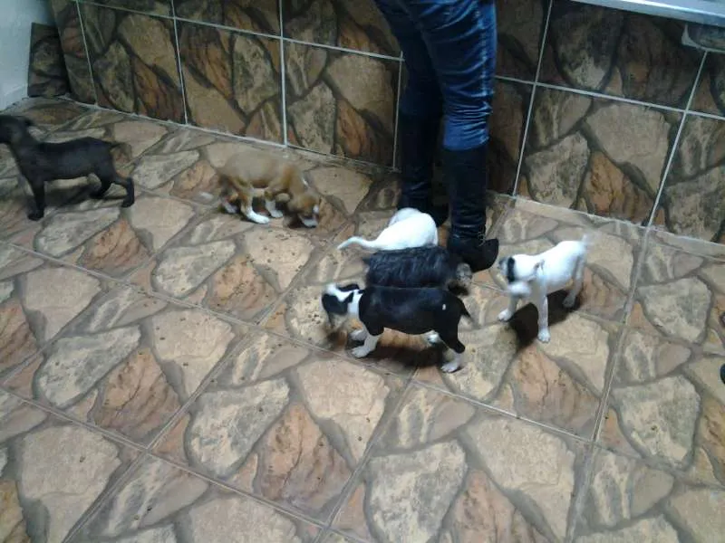 Filhotes lindos e. Fofos para adoção. De parte de mae tem cruza de pitbull com rowaller de parte de pai nao sei a raca, sei que e igual ao caozinho vagabundo do filme a dama e o vagabundo.... enfim sao lindos, meigos e sapecas ;-)