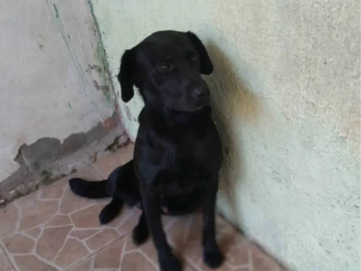 Raça Labrador com Vira-lataBrincalhão, carinhoso, tem medo de trovão, não destrói a casa.