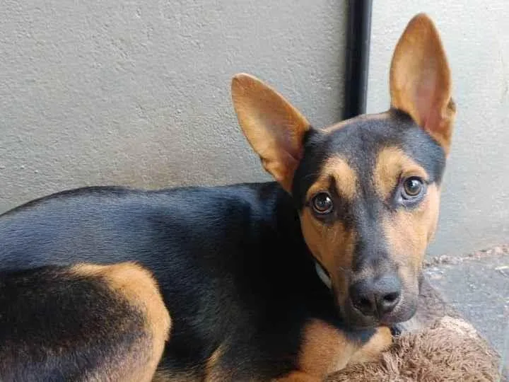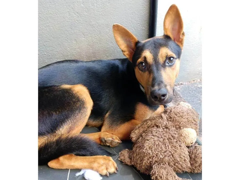 Valente tem 9 meses de idade , é muito alegre , brincalhão , se dá super bem com outros animais , adora o ser humano mas e um pouco medroso é vacinado e Desverminado porte médio .