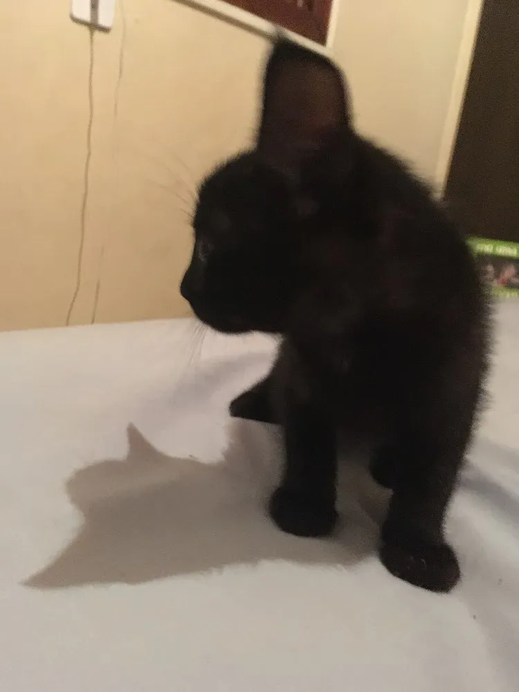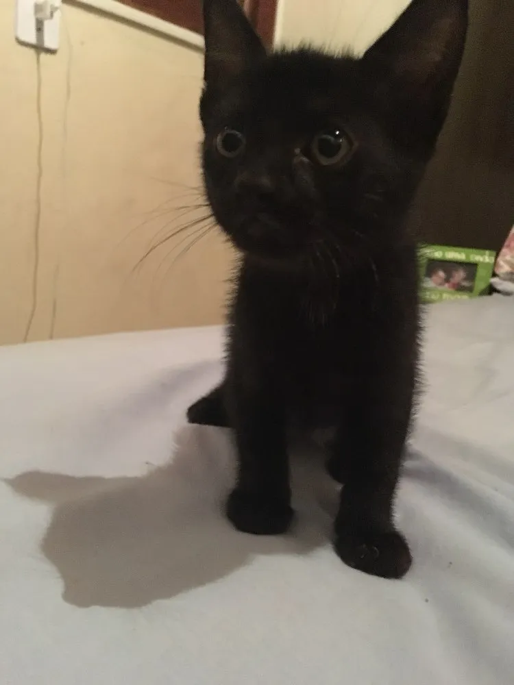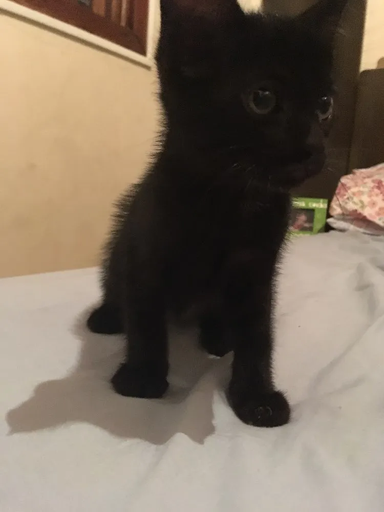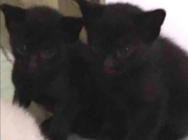 Dois gatos pretos irmãos acredito que seja machos nasceram dia 02/03/2018 já se alimentam de ração e fazem necessidades em sua caixa de areia , mãe deles é preta com branco bem peluda !!!!