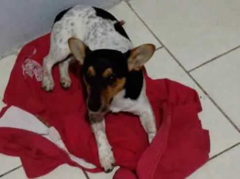 Otis tem muitas manchinhas pretas pelo corpo, tava gordinho. É orelhudinho também.