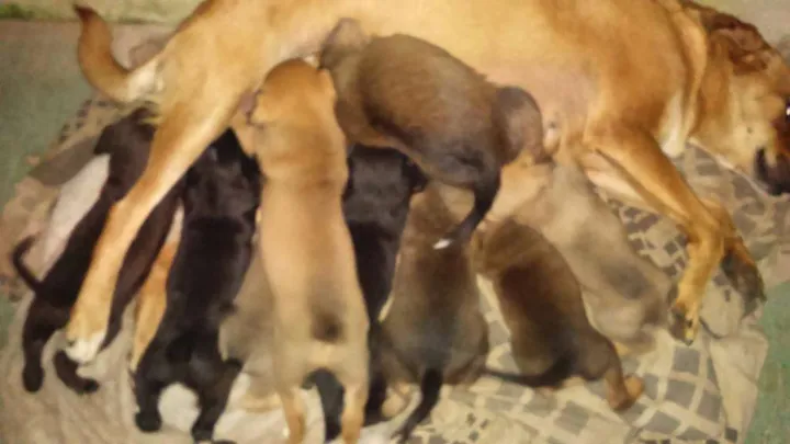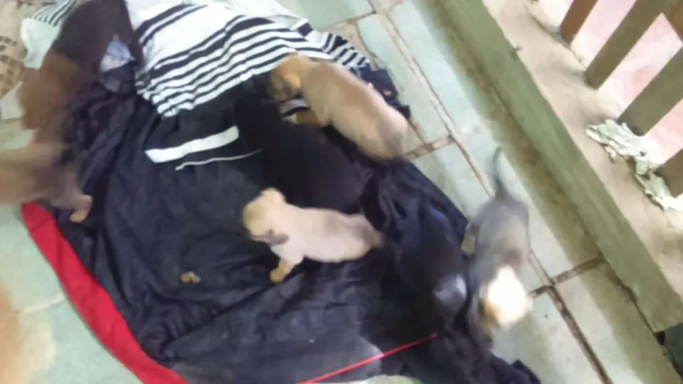 Cuido de uma cadela de rua que teve 9 filhotes, 3 machos e 6 fêmeas. 2 machos já foram adotados, preciso de ajuda para encontrar um lar para os outros, para que não fiquem na rua, pois não tenho estrutura para cuidar de todos. Estão com 1 mês e meio, já comem sozinhos.
