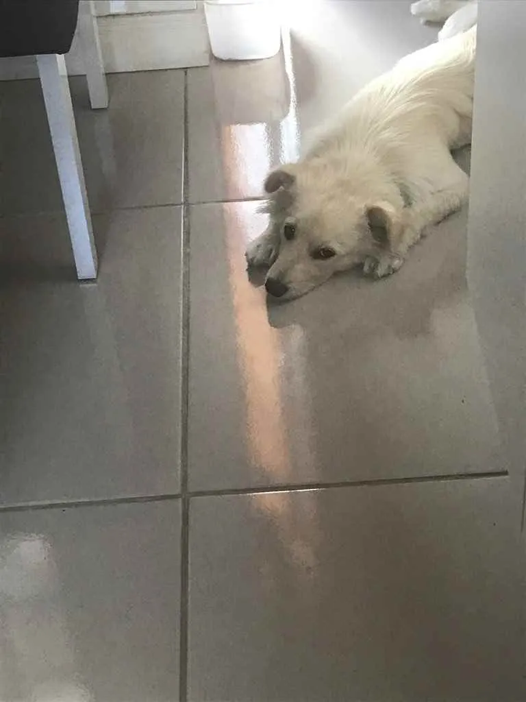 Belinha possuí todas as vacinas, inclusive está em dia com a medicação que evita de ter pulgas e carrapatos.