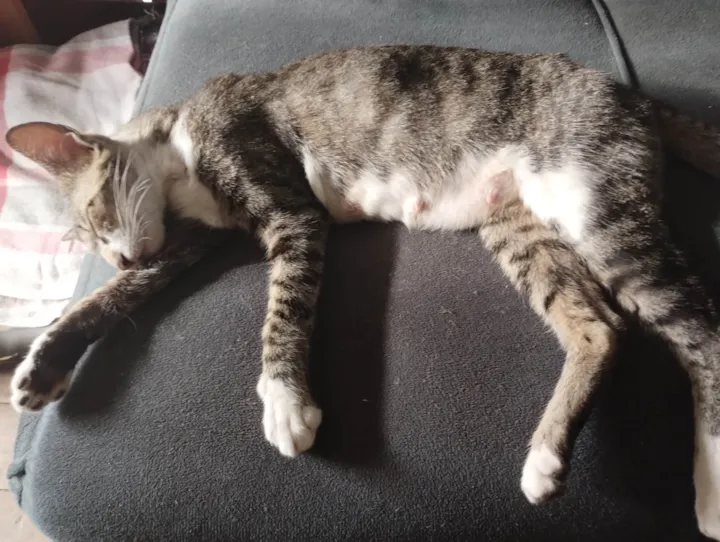 Essa linda felina veio parar em nossa casa depois de ter sido abandonada grávida. Ela deu à luz a uma ninhada de gatinhos adoráveis, e agora é a hora dela também encontrar um lar seguro e amoroso. Infelizmente, não podemos mantê-la, pois moramos em um bairro nobre onde os gatos são frequentemente maltratados.