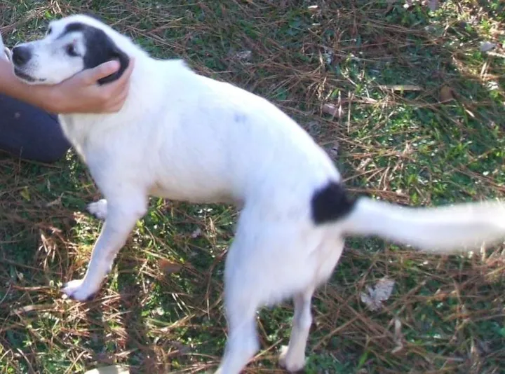 Vira -lata,cor branca com manchas pretas, orelhas pretas e mancha no lombo rente ao rabo, pelo de 2 a 3 cm, liso, desapareceu dia 20/out/14 no bairro paulista, campo bom,rs, 11 anos de idade, não acostumado com rua.