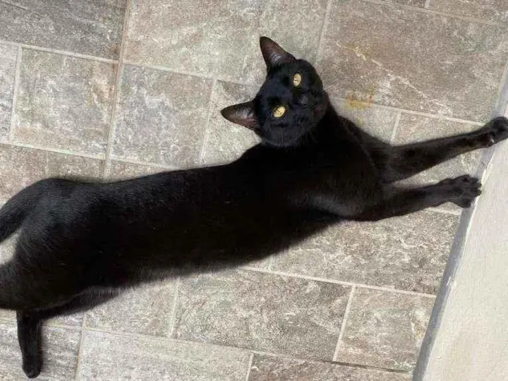 Uma gatinha bem fofa, manhosa e quietinha. Adora dormir o dia todo e ama carinho na cabeça. Chamo ela de Pretinha, no que ela mia bastante bem fofinho, mas o nome que dei é Blake.