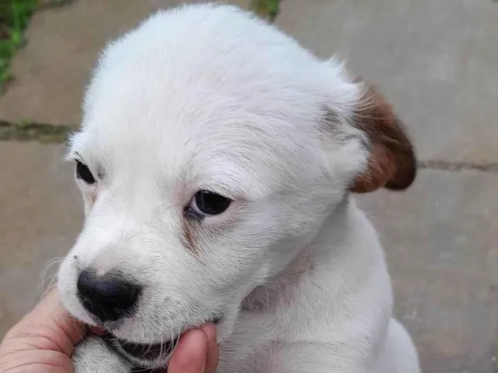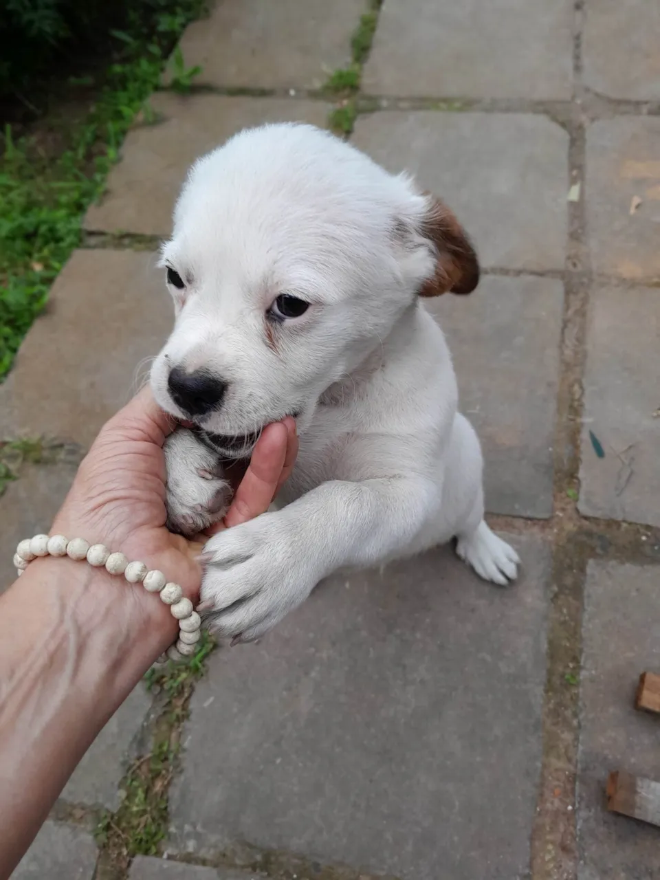 Ele tem as patinhas custas e apenas 1 orelha marron. Pelo curto. Carinhoso, Temperamento calmo e doce. Inteligente.