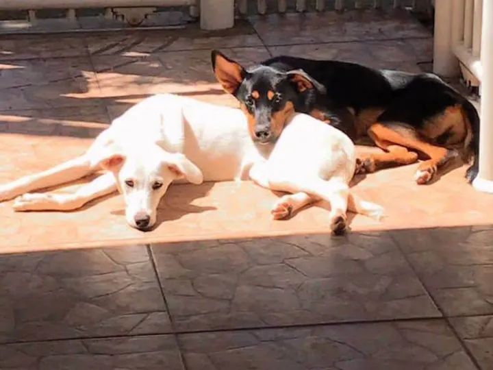 Tapioca e Feijão são dois cães extremamente dóceis, brincalhões e sociáveis. Eles se dão bem com outros cães e crianças, e são amigos fiéis e inseparáveis um do outro.