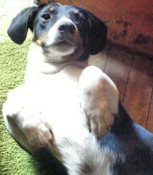 Baixinho, um pouco irritado . É gordinho, muito fofo e não tem rabo.