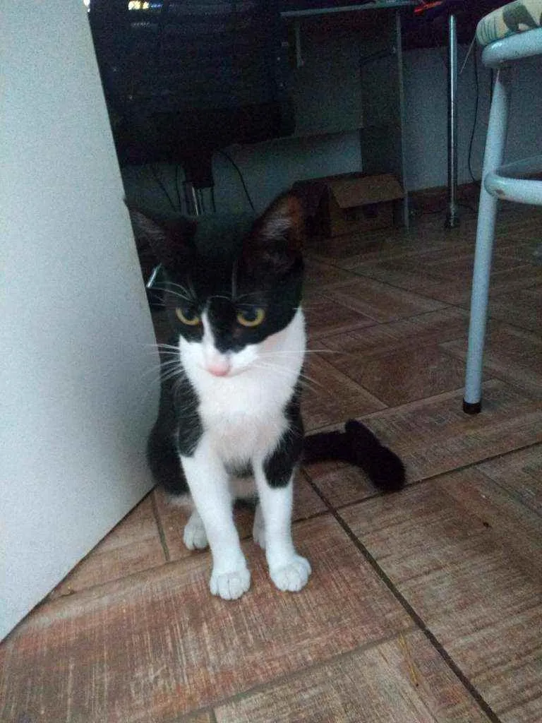 Encontrei esse filhote na rua ontem dia 26/02/2022 às 20:30. Ele não tem dono e está procurando um Lar. O Gatinho é muito dócil, adoro carinho na cabeça e retribui sempre que recebe. Ele é preto com barrinha branca e parte do rostinho branco. Aguardo contato, me chamo no whatsapp que mando fotos e videos dele