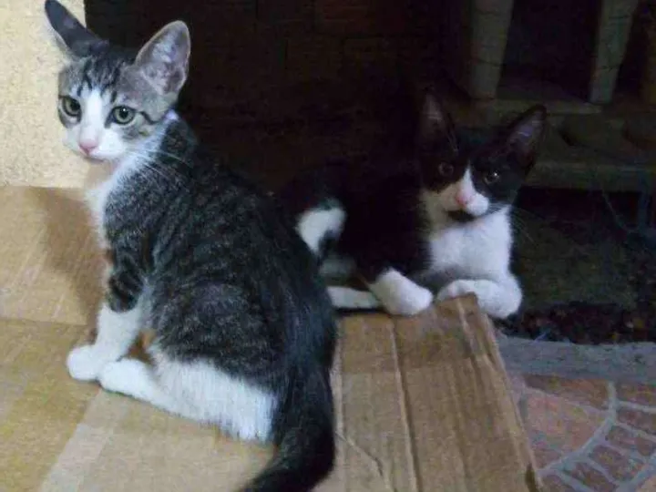Preto e branco é o Frajola é um macho, a mesclada é a Maiarinha uma fêmea, ambos com 2 meses e meio, comem ração, estão desverminados usam caixa de areia, são muito carinhosos.