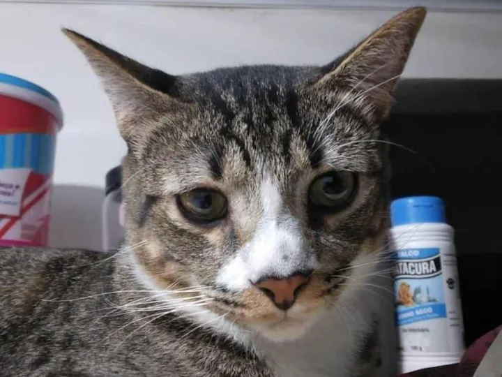 GATO DE 2 ANOS, TIGRADO, CINZA CLARO E EESCURO, RABO CINZA E PRETO, PEITO BRANCO, POSSUI UM PROBLEMA NO OLHO DIREITO, SUMIU NO BAIRRO SAO LUIS, CAMPOS DA SERRA.