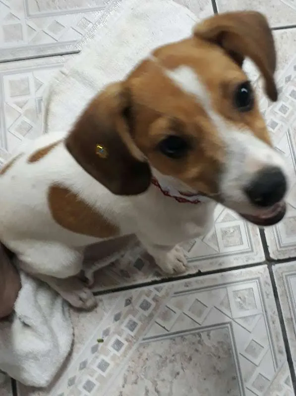 Achei ela em frente a minha casa e resolvi ajudá-la a achar um novo lar. Ela é muito dócil e brincalhona, tem por volta de 2 meses e pesa 3,5kg, parece que será de médio porte.