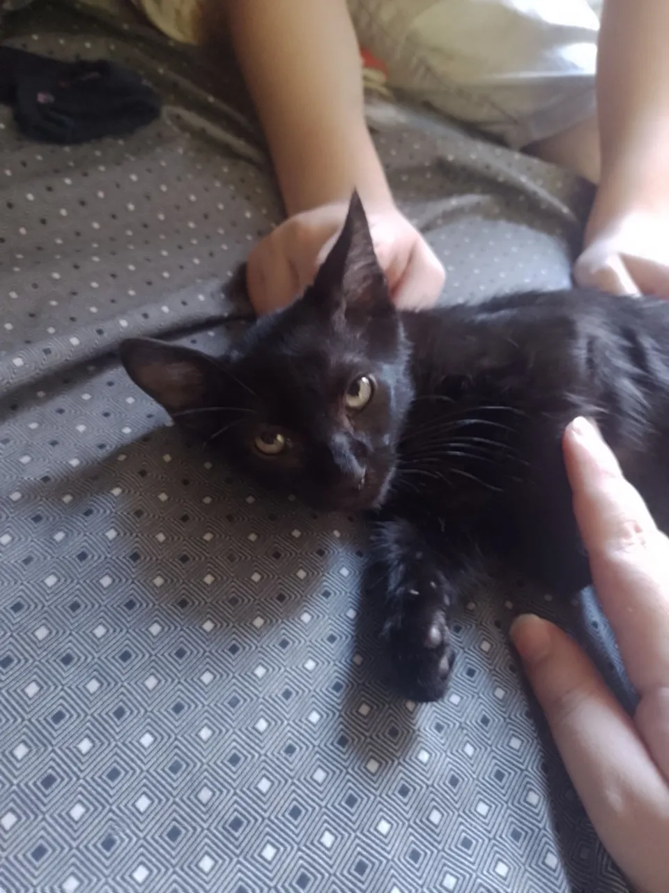 Hamilton é um gatinho preto de aproximadamente 3 meses, calmo e observador. Ele é um pouco antissocial no começo, mas isso só significa que gosta do próprio espaço e de ambientes tranquilos. Ideal pra quem ama um companheiro mais quietinho, que curte ficar por perto sem muita bagunça.
