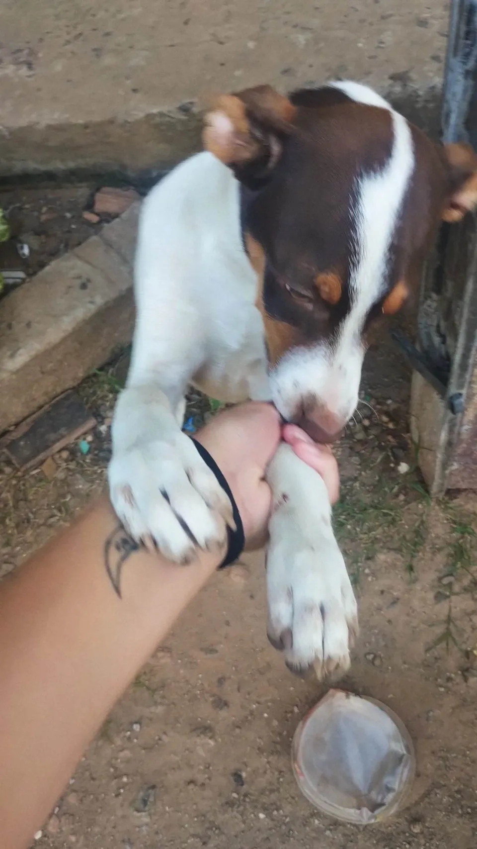 Esse é o furacão Branco, esse carinha tem uma energia de sobra!! Então se você gosta de filhotes animados ele é o filhote ideal, pra ele não tem tempo ruim é bem brincalhão adora um carinho, é companheiro, curioso que só e se dá bem com outros animais ?? não temos condições de ficar com ele só estamos cuidando até o momento ?? já tomou remédio de vermes e a 1 dose da parvovirose