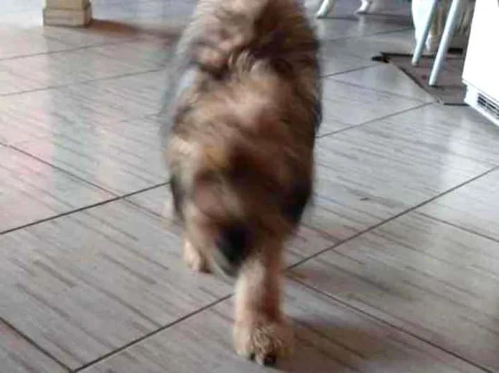 É um filhote de cruza de um poodle com Chow-Chow de 7 meses. O filhote é brincalhão, gosta de sair, gosta de crianças e um pouco atrapalhado. É de cor marrom e uma parte de sua língua é preta.