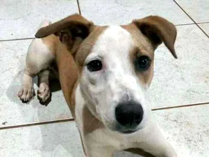 Cachorra porte pequeno, pelo curto, cor branca com marrom claro. Filhote, super dócil, brincalhona e muito inteligente. Ótima para guarda e para família.