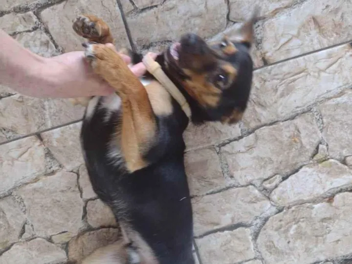 Saúde em ótimo estado, com recém comprada colheira de anti pulgas, brincalhão , gosta de correr e morder de brincadeira,adora carrinho, chorar para pedir a comida do pessoal