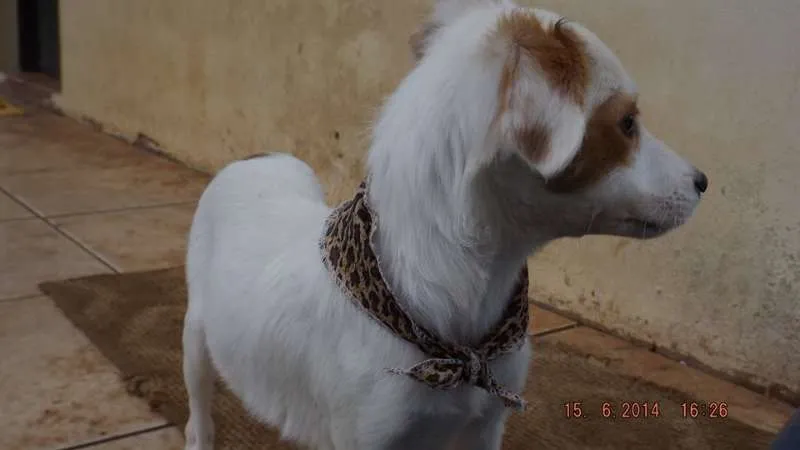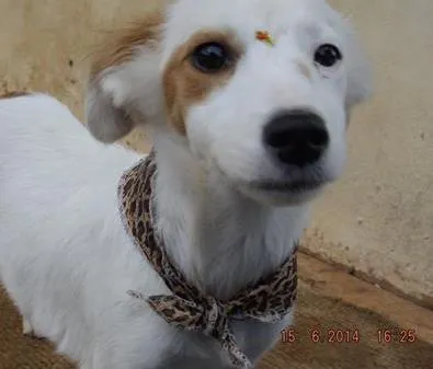 A Branquinha é uma vira-latinha linda, mimosa, carinhosa e brincalhona. Foi abandonada, está em um lar de passagem e precisa de um lar, uma família que a ame e a cuide.