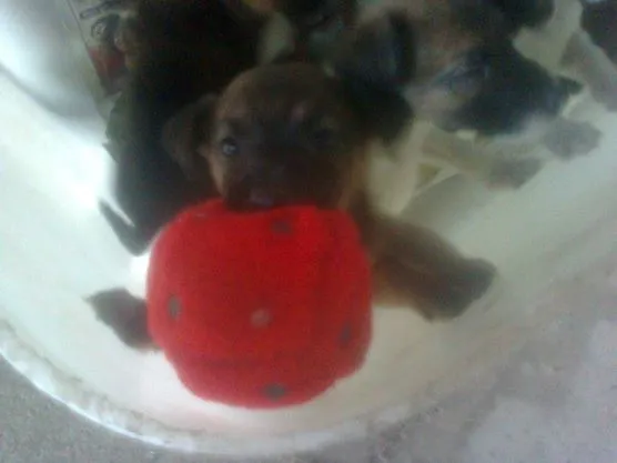 Cadela foi retirada da rua esperando cachorrinhos,agora a senhora não tem condições de ficar com eles,tem 9 filhotinhos.